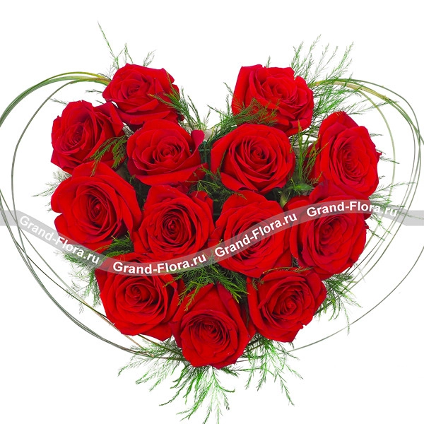 Великолепная композиция,  выполненная на оазисе из красных роз в виде сердца. Идеальный подарок, который расскажет все о Ваших чувствах.