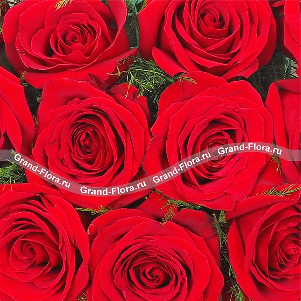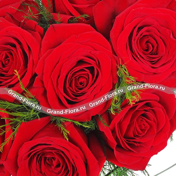 Стандартный:  роза красная - 11 шт. (Эквадор), декоративная зелень, берграс, оазис.