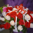 Хочу поблагодарить вас! Учли все мои пожелания и собрали коробку цветочную просто восторг! Мой подарок для юбилярши был самым красивым на празднике. Твердая 5 и за сервис и за качество цветов!!!