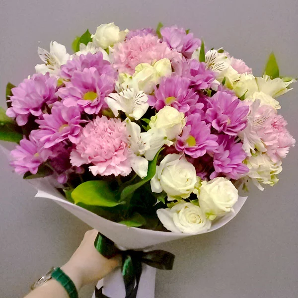 Выражаю благодарность флористам и курьеру за красивый букет, оперативную доставку и фоточи, спасибо что помогли мне поздравить самого дорого мне человека, маму, с днем рождения