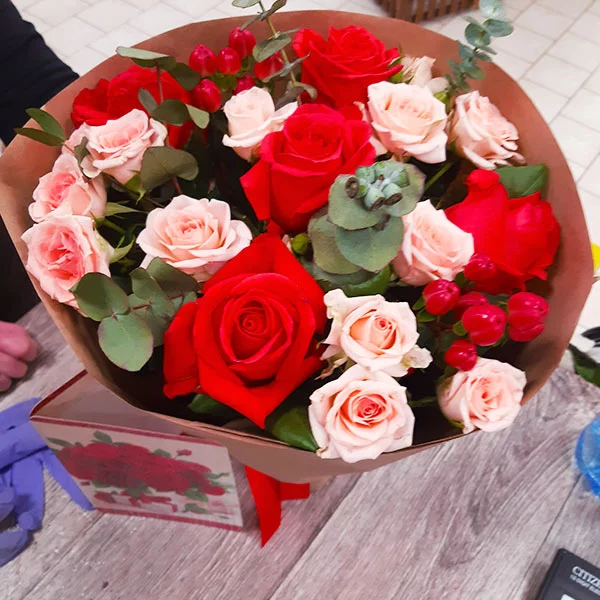 ОТЗЫВЫ О БУКЕТЕ «Букет из красных и кремовых роз – Цветочный рай»