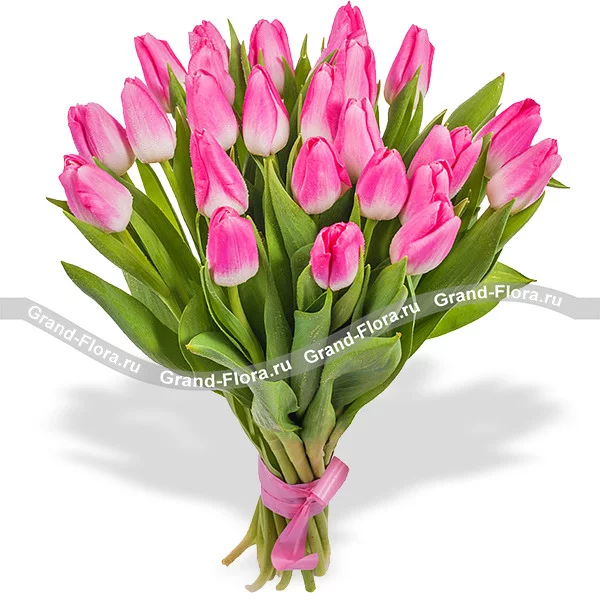25 тюльпанов: тюльпаны розовые - 25 шт, лента розовая.