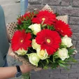 Невероятно-женственный букет создан стать подарком пленительнице вашего сердца. Утончённые белые розы и красные герберы воплотились в цветочную поэму, способную рассказать о ваших самых сокровенных  чувствах!