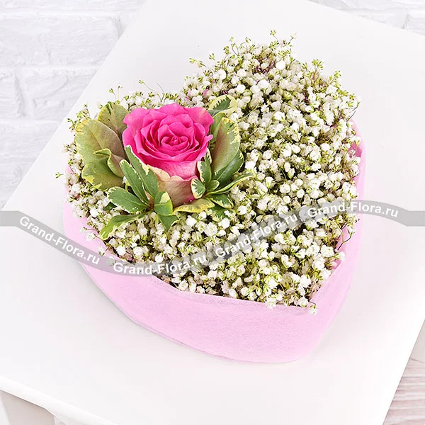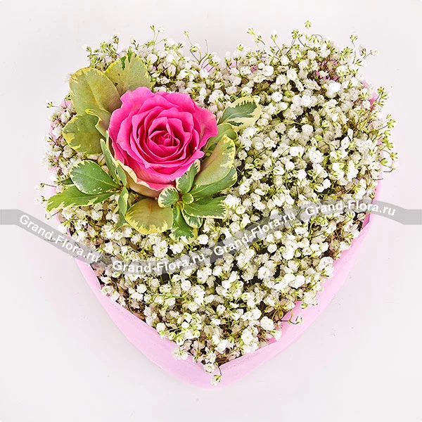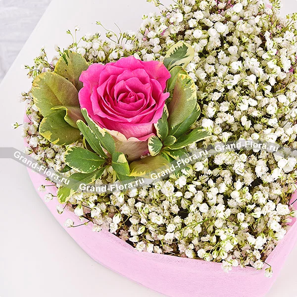 Романтика - сердце с гипсофилой и розовыми розами