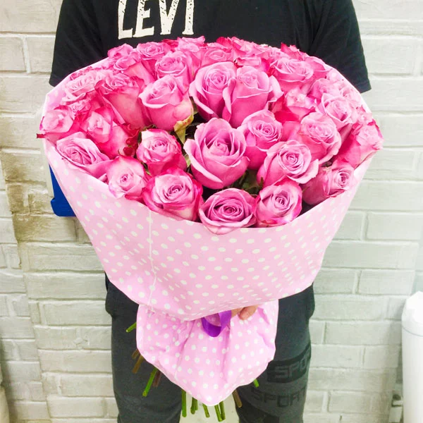 35 роз: роза розовая - 35шт., упаковка, лента.