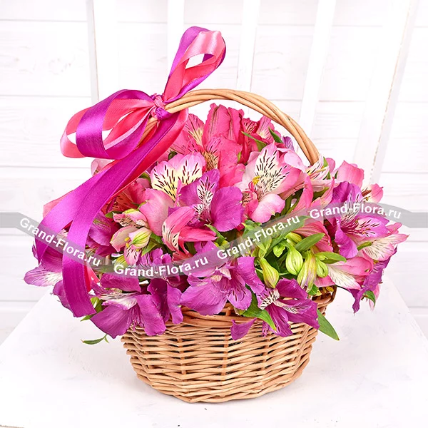 Альстромерии розовые и фиолетовые – 11 шт.,оазис, корзинка.
