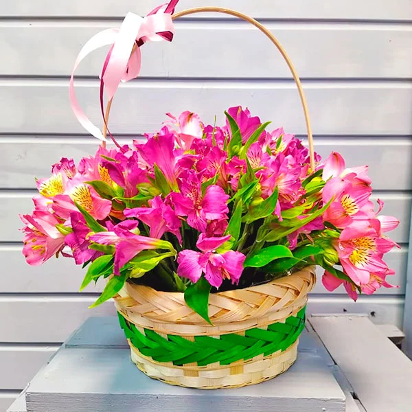 Большое спасибо за прекрасную композицию! Корзиночка чудесная! Альстромерии сохранили свежесть долго. Качеством цветов и сервисом остались довольны.
