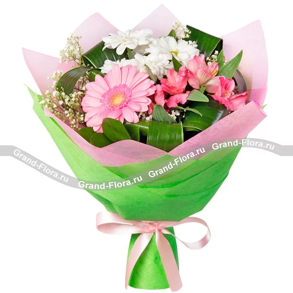 Букет из простых, но нежных цветовстанет приятным комплиментом ! Подарите его тому кто важен и  значим!  Пусть этот сюрприз преподнесенный  даже без особого повода, порадует получателя.