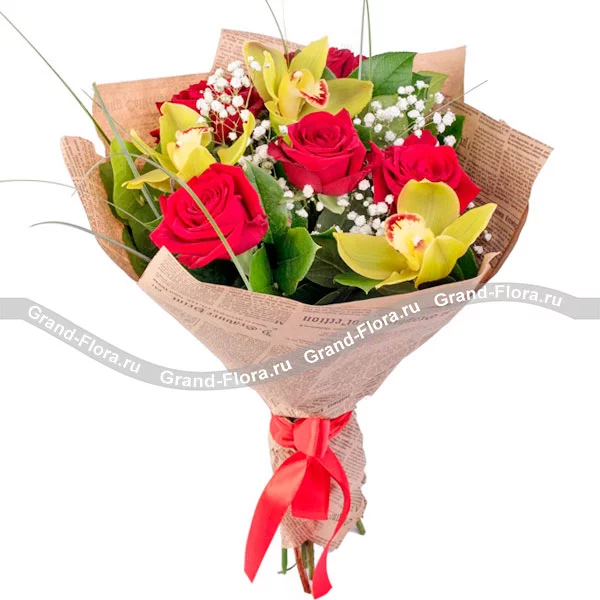 Роза и орхидея - классическое и  элегантное цветочное  сочетание!  Букет  украшен декоративной зеленью и упакован в оберточную бумагу. Стильный и элегантный  этот цветочный комплимент не оставит получателя равнодушным. Закажите доставку на любой адрес в вашем городе и мы с радостью привезем этот букет  тому, кто вам дорог!