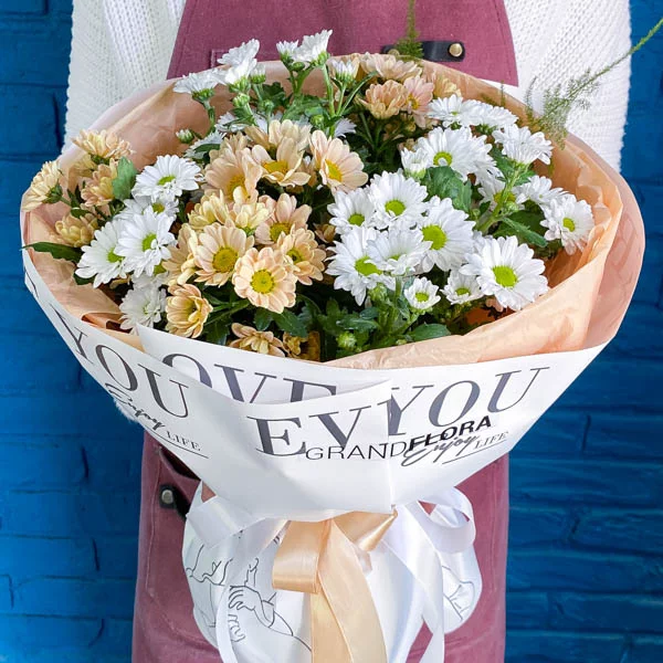 Очарование нежностью – букет из кустовых хризантем