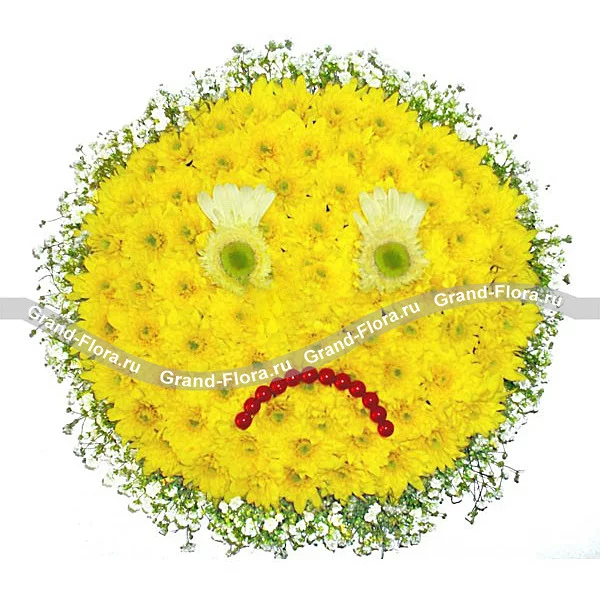 Вы в разлуке с любимой или подругой? А быть может, вы поссорились? Лучший способ рассказать ей о том, что скучаете по ней, - это подарить грустный цветочный смайлик. Взглянув на него, девушка, тут же поймет, что вы к ней относитесь искренне и будете рады оказаться рядом с ней вновь. Поверьте, она не устоит и позвонит вам.
